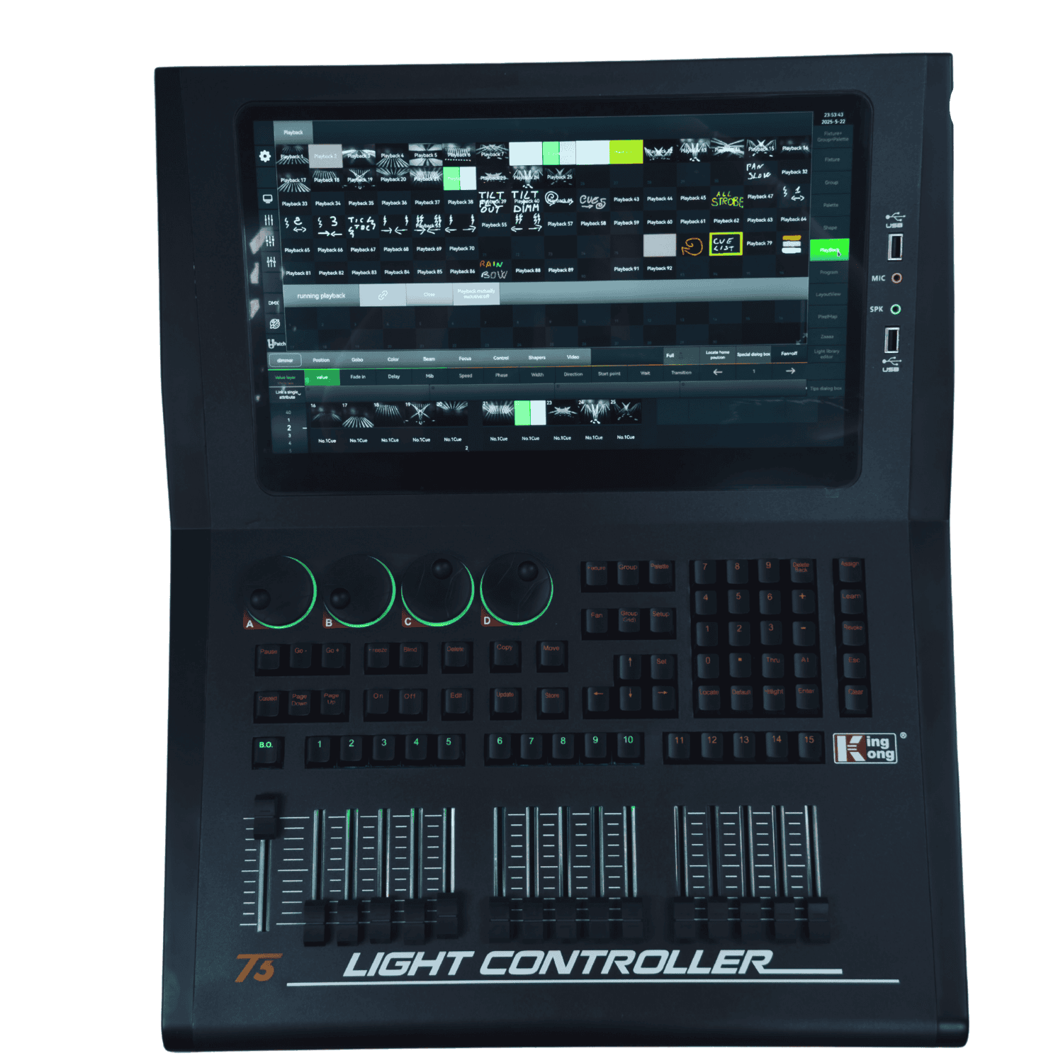 La King Kong T3 è una centralina DMX 512 di nuova generazione, progettata per un controllo intuitivo e potente delle luci, ideale per eventi dal vivo, spettacoli teatrali e installazioni professionali. Grazie al suo design moderno e alle numerose funzionalità avanzate, offre un controllo preciso e personalizzabile per luci e effetti.